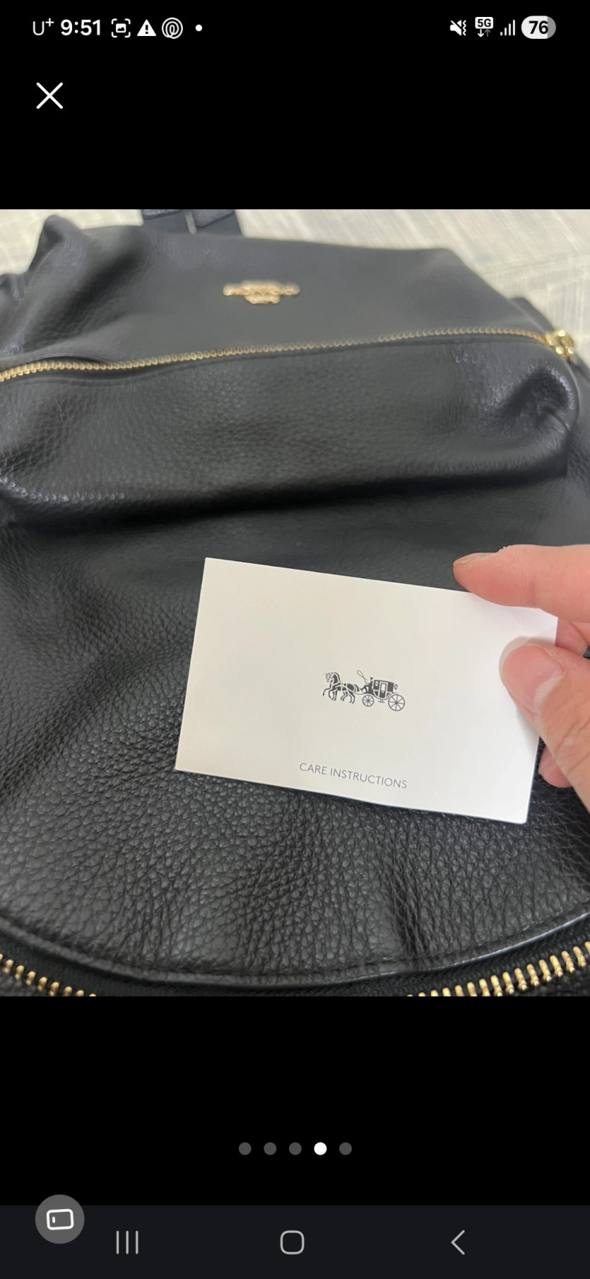 • 소재의 질감과 광택에서 Coach 특유의 고급스러움이 일부 느껴지나, 사진상으로는 두께와 주름 표현이 모두 파악되지는 않아요