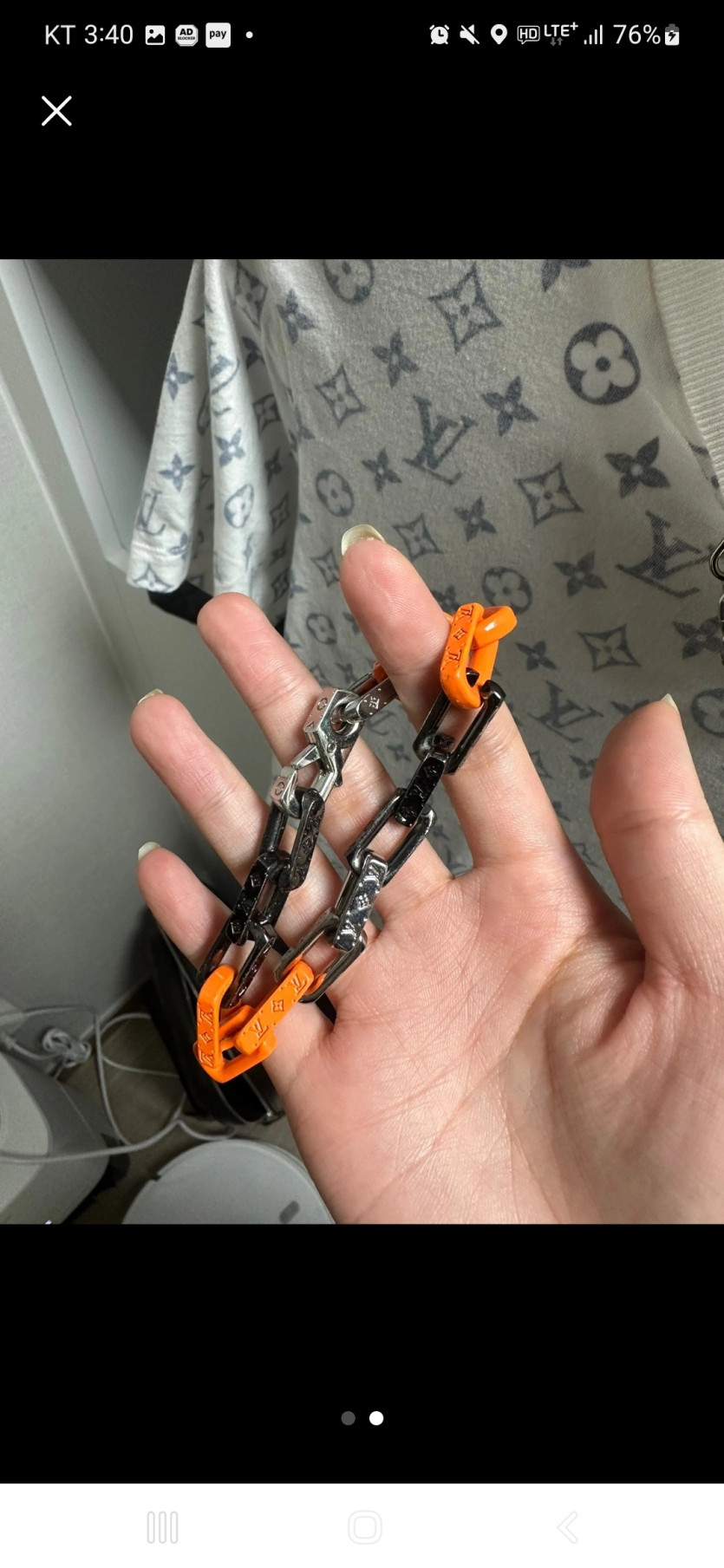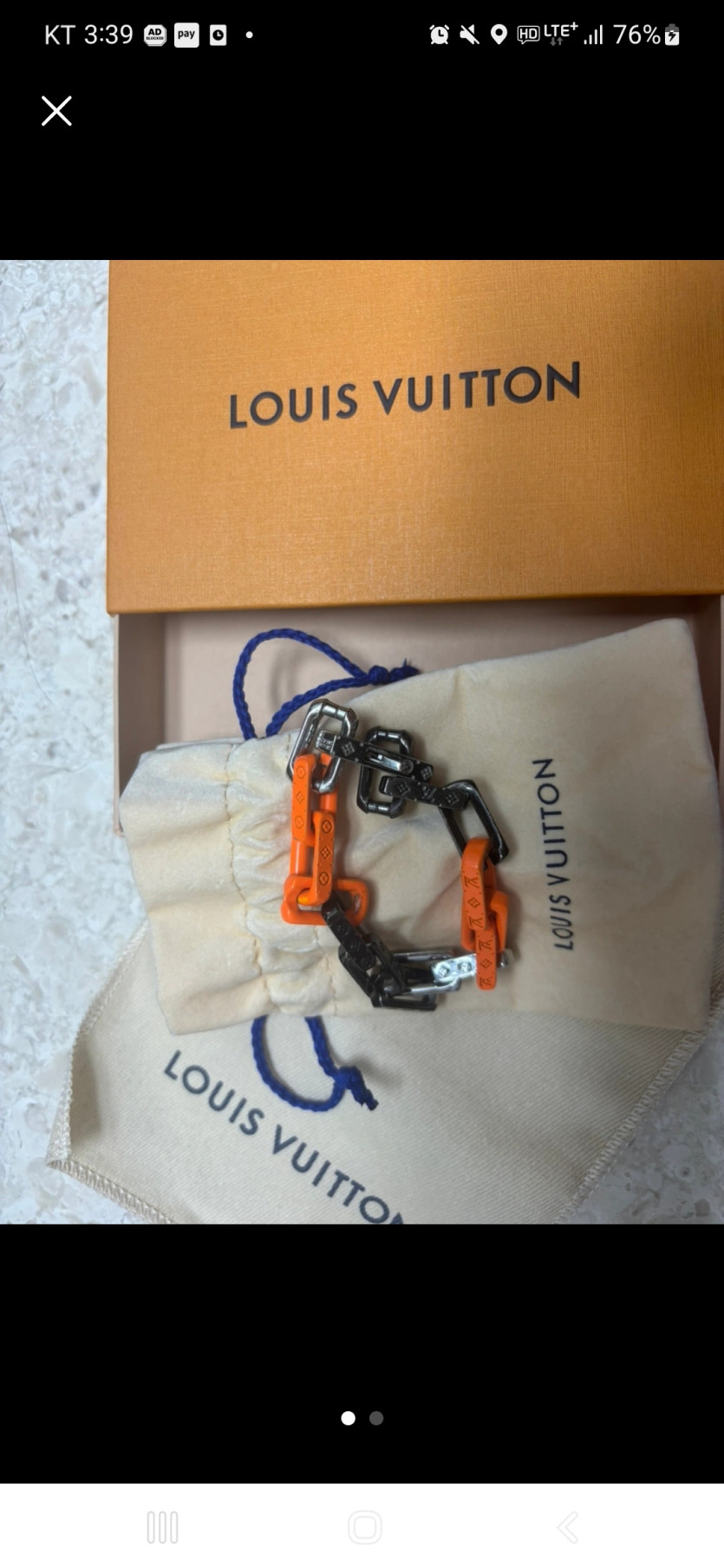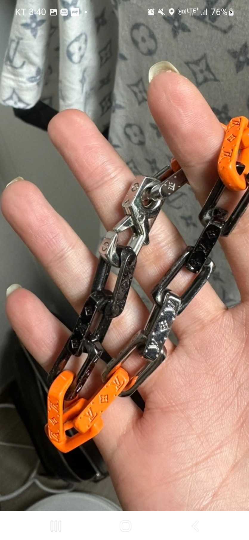 Louis Vuitton Monogram Chain Bracelet Silver Orange Black
