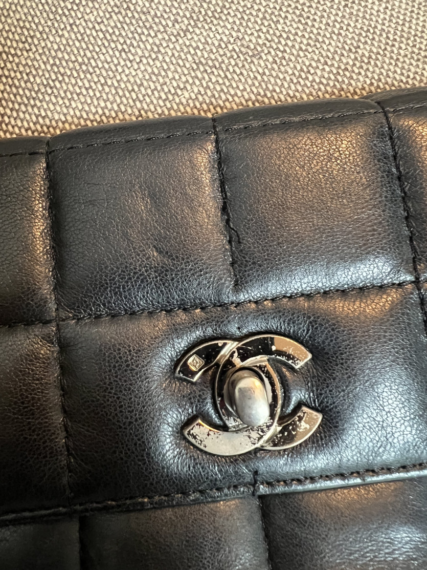 • 로고의 각인과 크기, 정렬 상태는 CHANEL 제품의 전형적인 특징과 유사해 보입니다