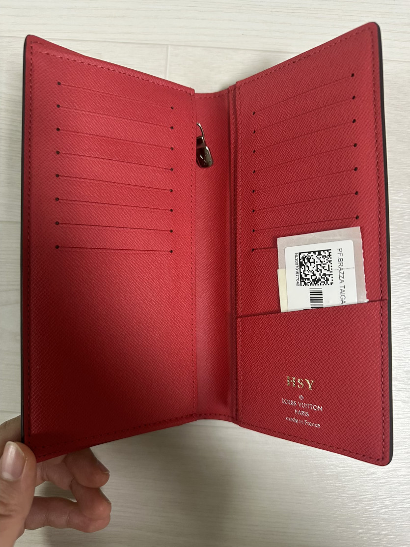 → 내부 가죽 접힘 안쪽에 은은하게 각인되는 방식이 정상