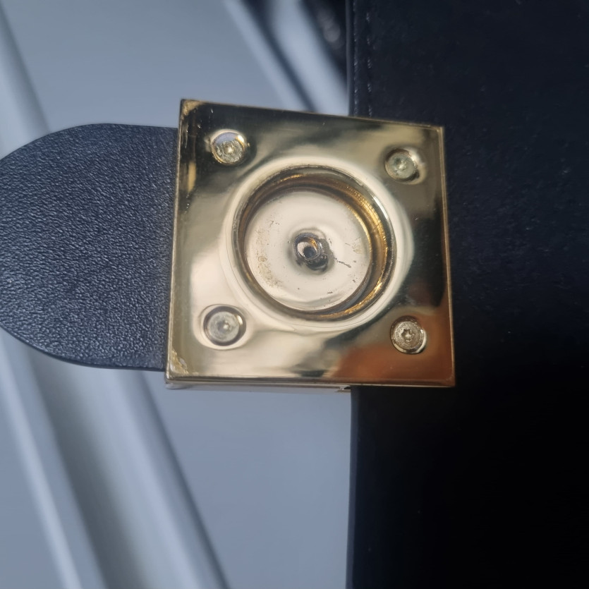 폰트 굵기, 자간, 금박 압인 상태가 정품입니다. 날짜코드 규칙도 부합하고 락의 금속마감이 O가 완전히 둥글지 않고 타원형인점, L의 짧은 꼬리, V의 각도 모두 정품 특징과 일치합니다.