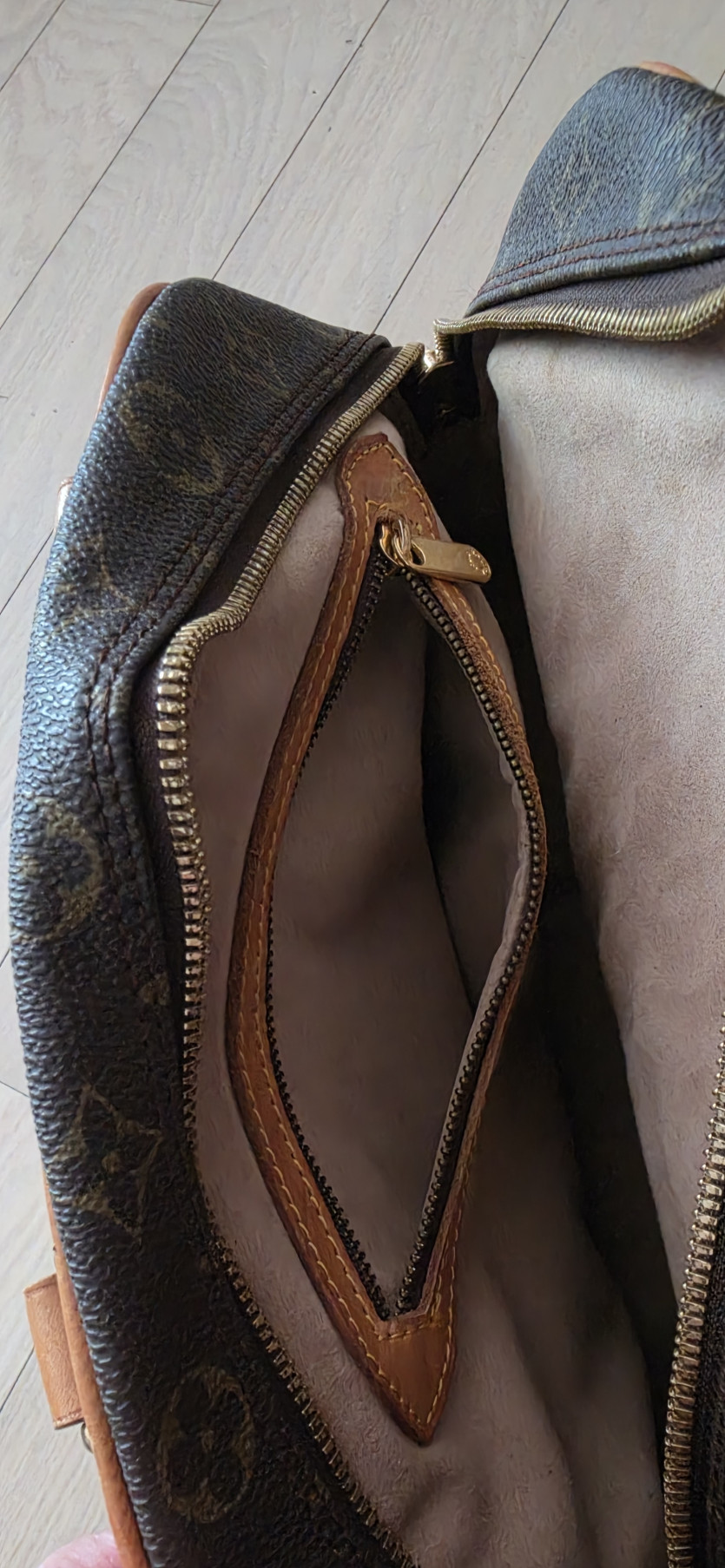• 로고의 위치와 크기, 각인, 금속 장식의 각인 상태는 자연스러워 보이지만 일부분은 확인이 어려워요.
